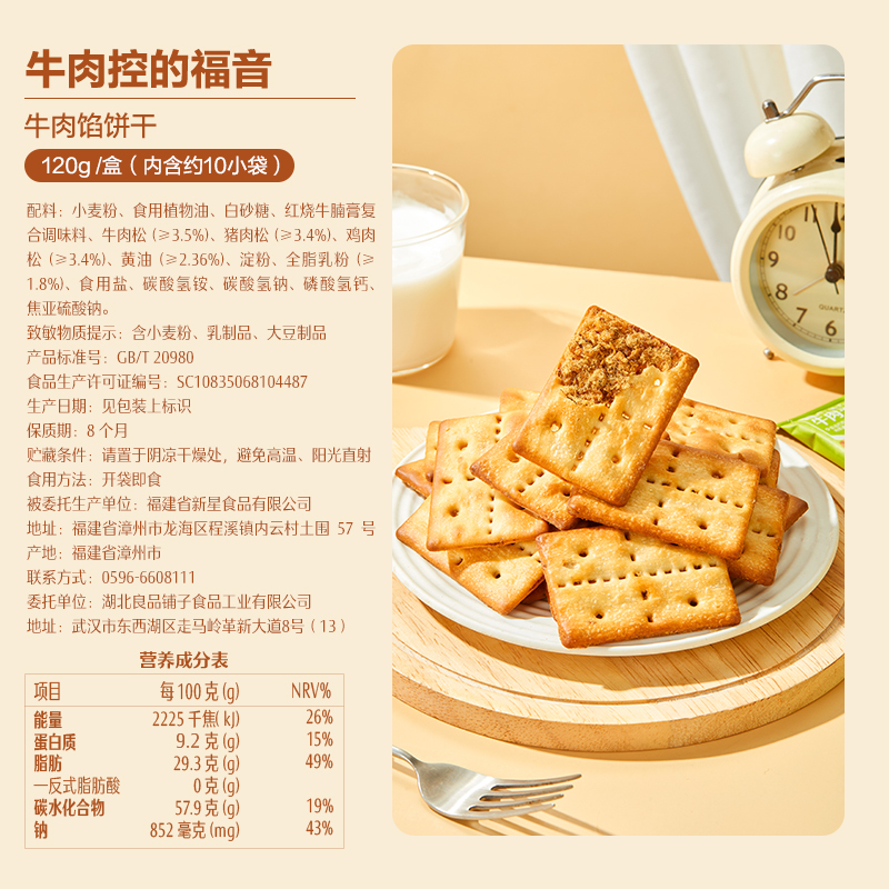 良品铺子牛肉馅酥脆饼干120g薄脆饼干办公室零食