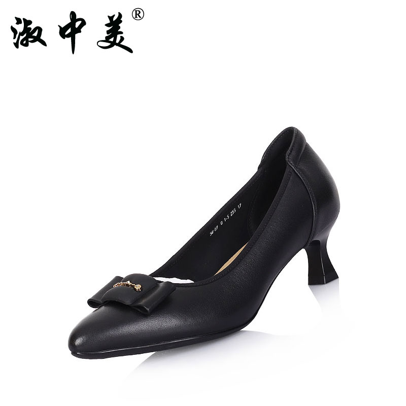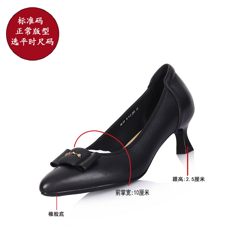 宽楦羊皮尖头细跟通勤浅口单鞋 大码 黑松露 秋冬女鞋 7or9黑色高跟鞋