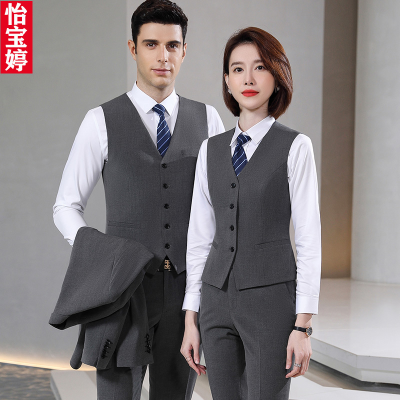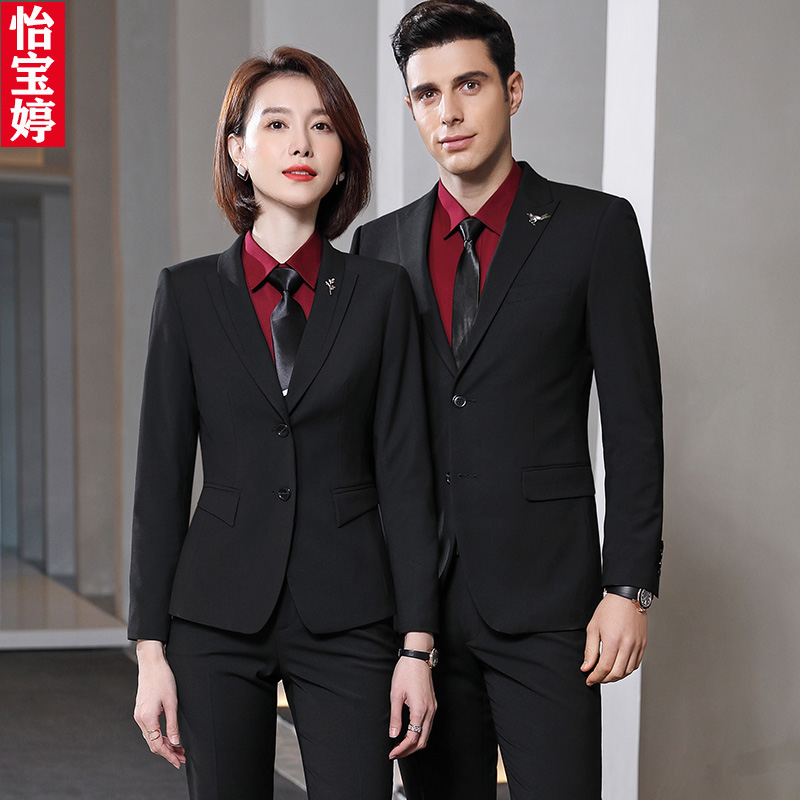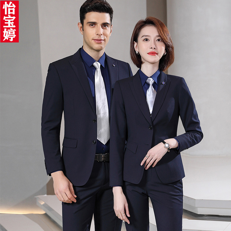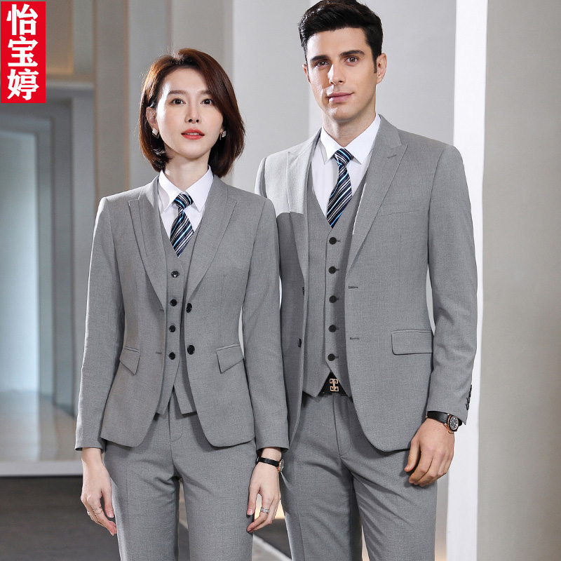 工作服西装 公司企业修身 深灰色气质工装 职业高档商务男西服套装