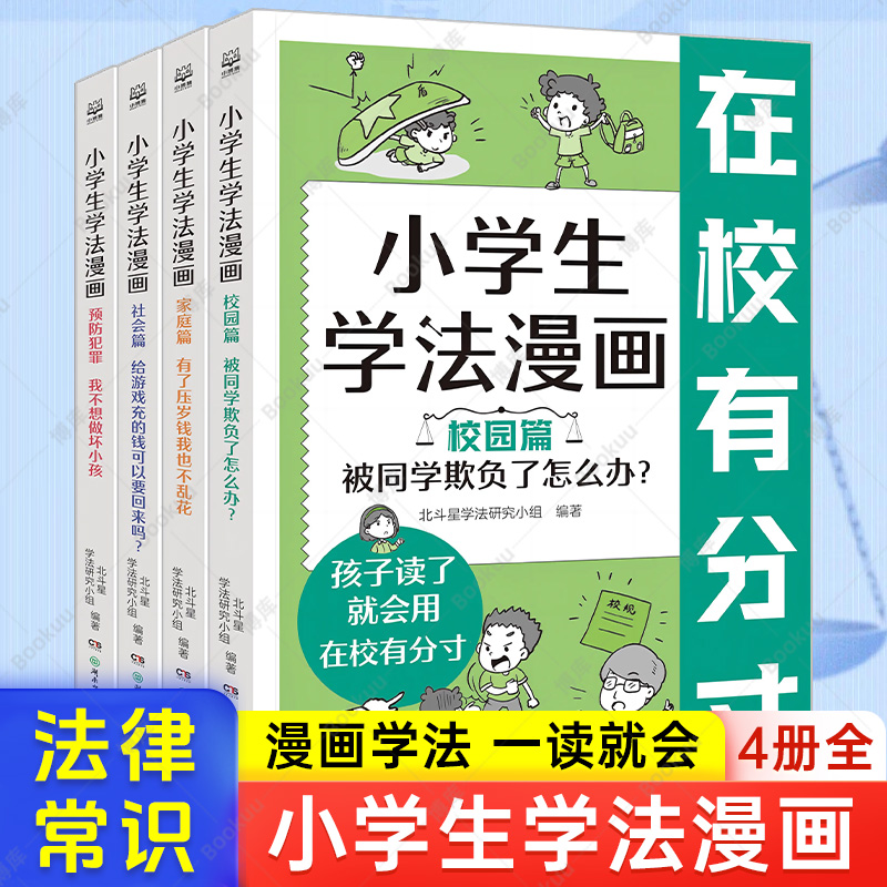 小学生学法漫画全4册正版 儿童趣味漫画故事让孩子知法学法懂法青少年自我保护法律启蒙小学生法律常识安全教育认知书校园家庭社会