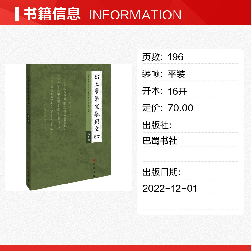 文物 成都中医药大学中国出土医学文献与文物研究院 考古社科 新华书店正版 巴蜀书社 出土医学文献与文物 图书籍 第2辑