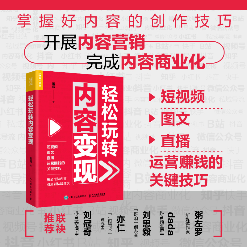 人民邮电出版 轻松玩转内容变现黄盛著短视频图文直播运营赚钱 图书籍 新媒体抖音小红书视频号等内容营销新华书店正版 社 关键技巧
