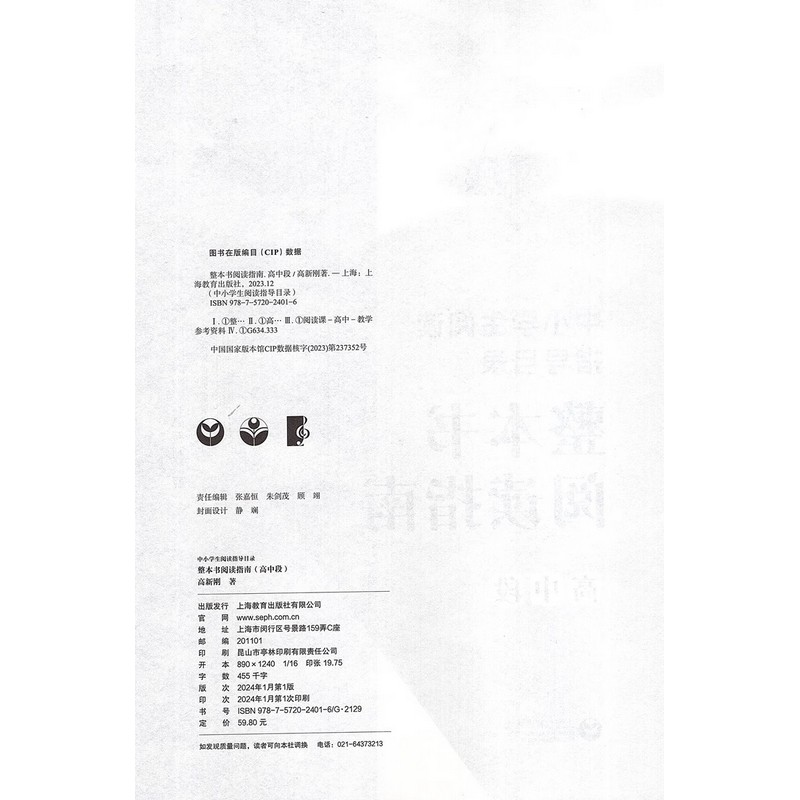整本书阅读指南 上海教育出版 高中段 社高中学段图书关键信息阅读知识点整合提炼 社 高新刚上海教育出版 中小学生阅读指导目录