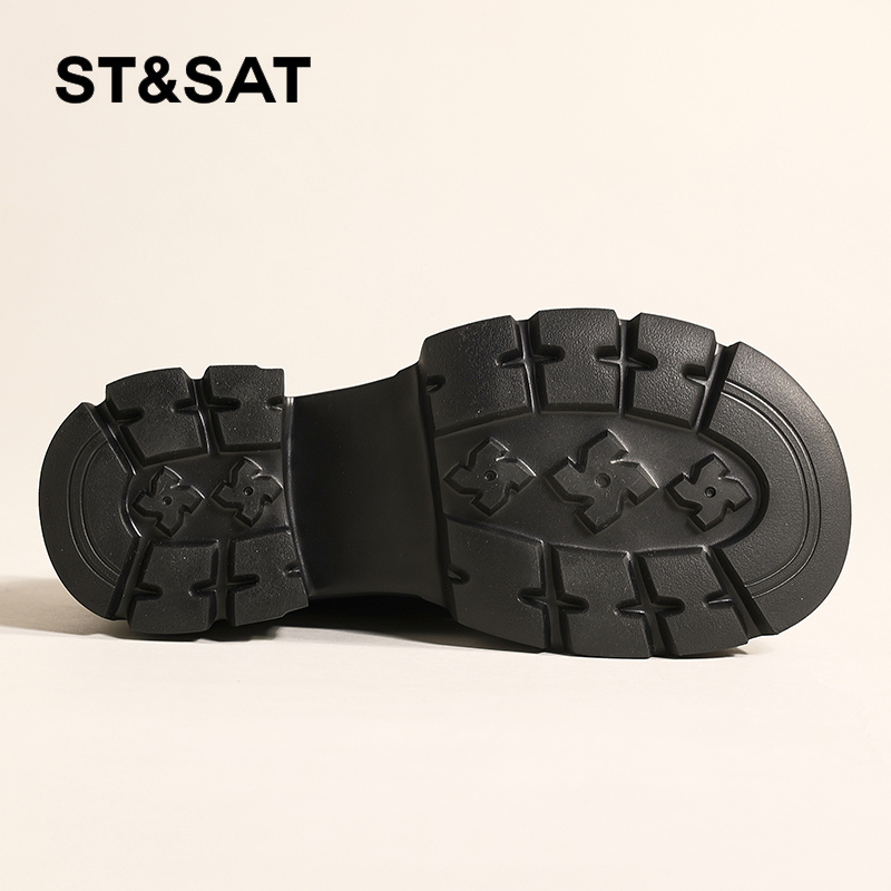 百搭粗跟增高单鞋 英伦风小皮鞋 子 女2025秋季 星期六真皮厚底乐福鞋