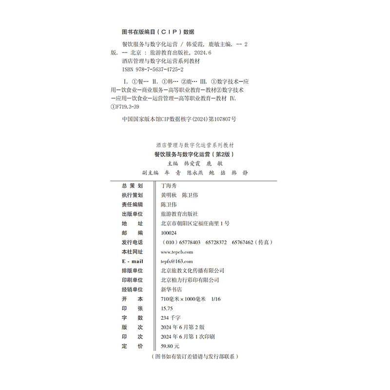 第2版 旅游教育出版 韩爱霞 酒店管理与数字化运营系列教材 社 鹿敏主编9787563747252 餐饮服务与数字化运营