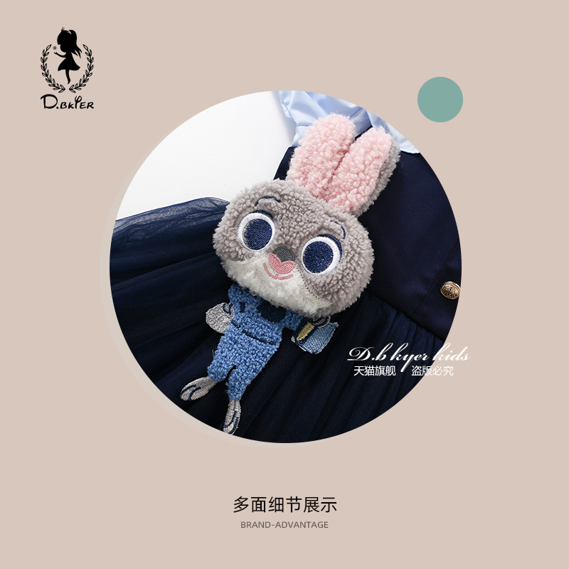 D.Bkyer女童秋季 公主裙朱迪兔子警官儿童衣服连衣裙生日女孩裙子