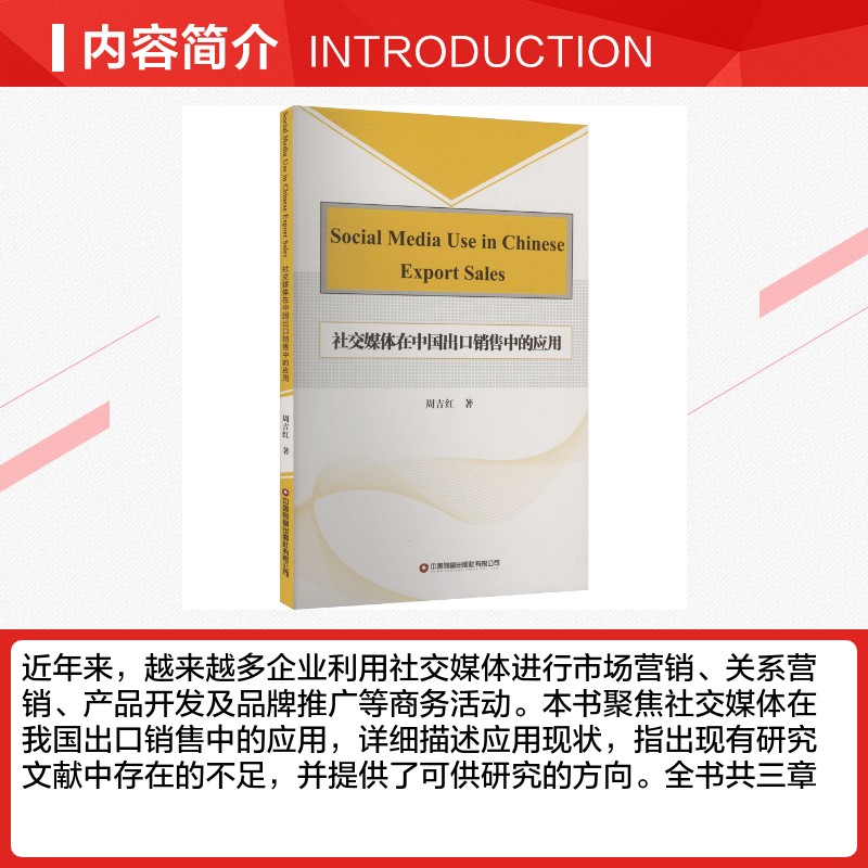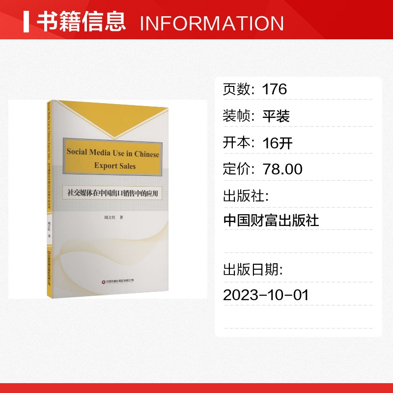 周吉红 著 广告营销经管 社交媒体在中国出口销售中 新华书店正版 SOCIALMEDIAUSEINCHINESEEXPORTSALES 励志 图书籍 应用