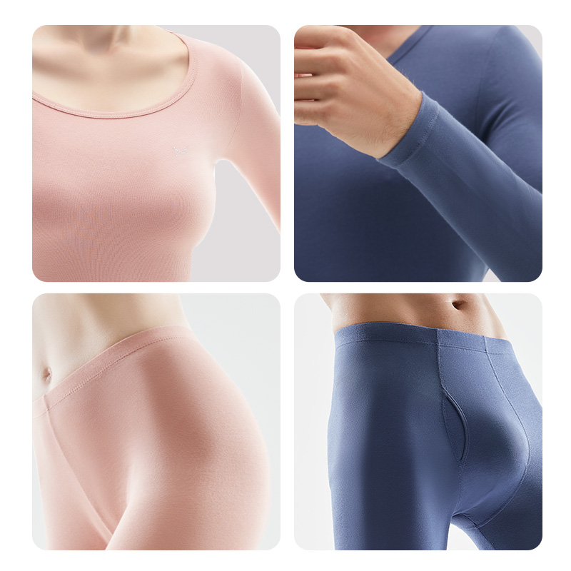 纯棉秋衣秋裤 猫人无痕保暖内衣男女士圆领上衣打底衫 套装 折