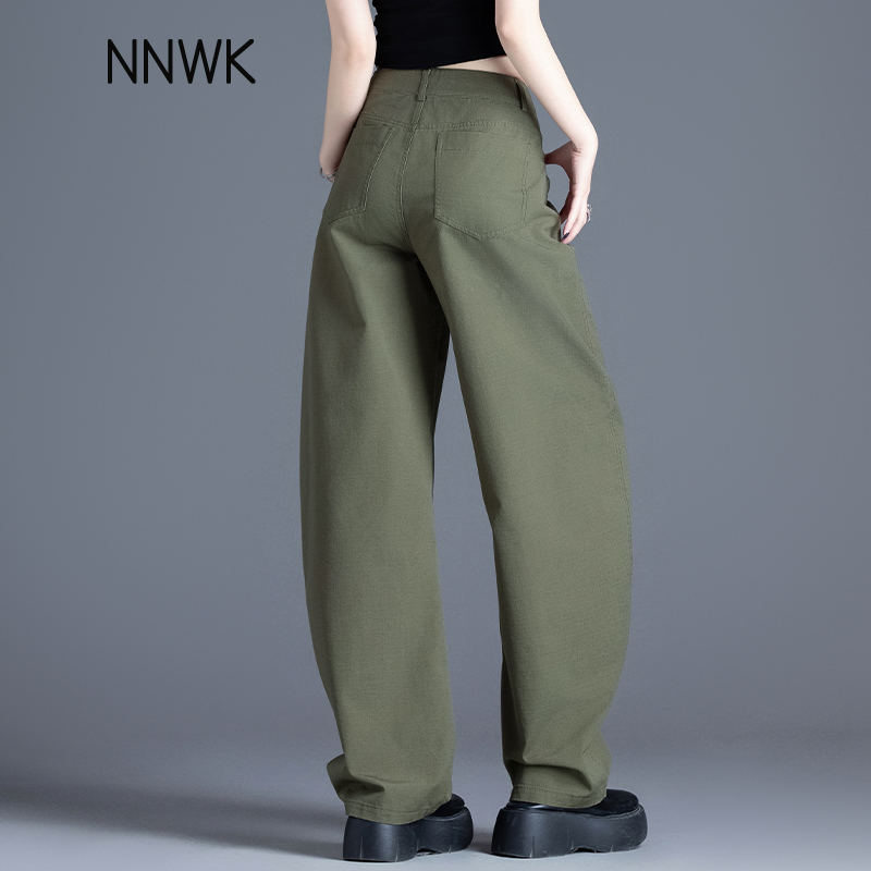 高腰宽松直筒弯刀裤 军绿色裤 春秋季 女2025新款 女士小个子 子休闲裤