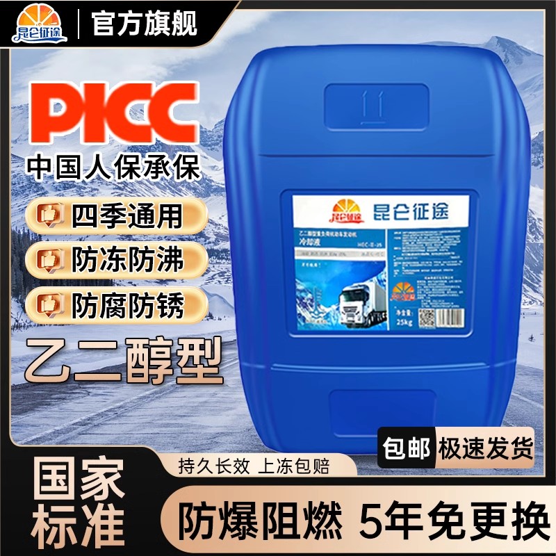 昆仑征途国标乙二醇防冻液暖气片锅炉空气能太阳能管道通用冷却液