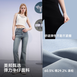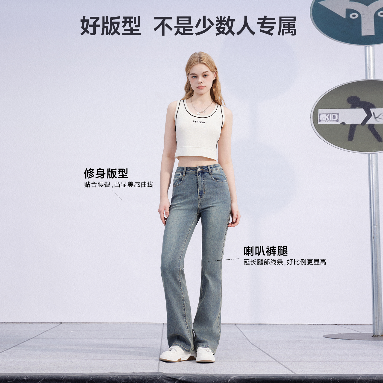 弹力修身 新款 时尚 潮流喇叭裤 美特斯邦威牛仔裤 牛仔长裤 女2025夏季