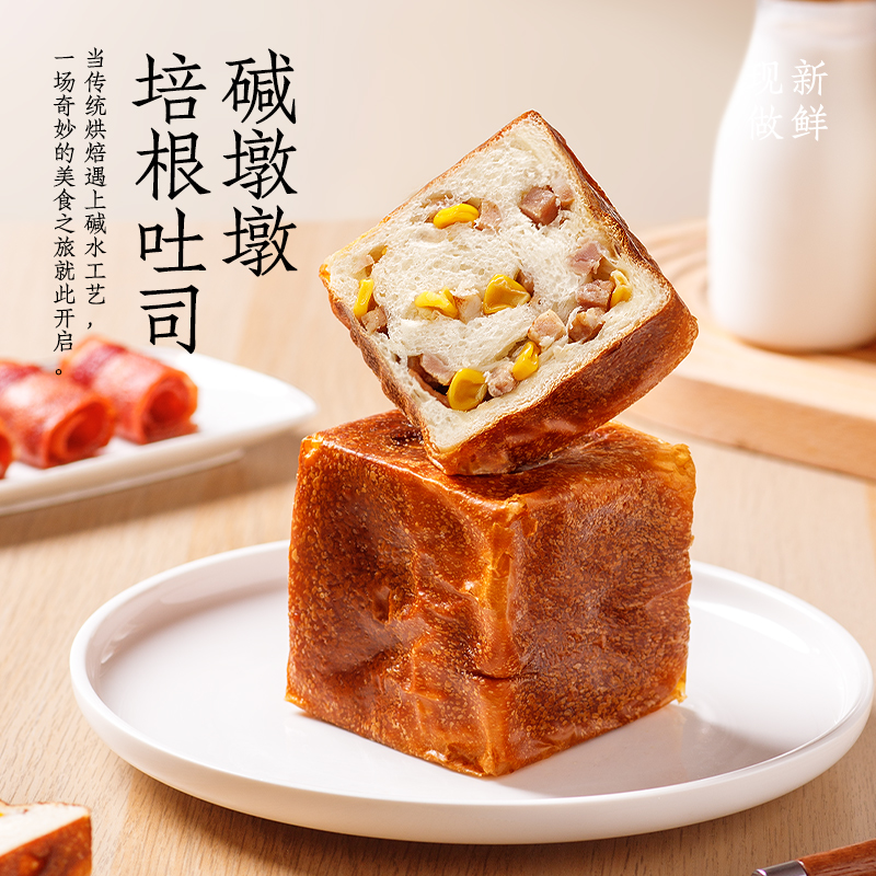 亚膳碱水墩墩培根吐司全麦早餐手撕面包学生营养代餐零食品