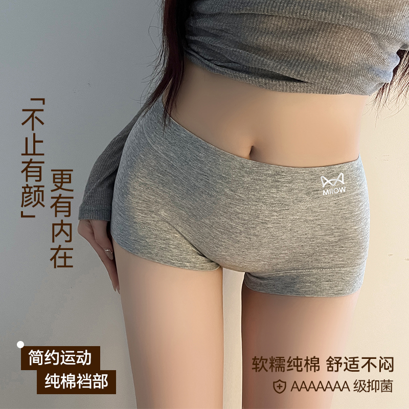 猫人平角女士内裤 女生纯棉7a级抗菌全包臀不夹屁股性感四角安全裤