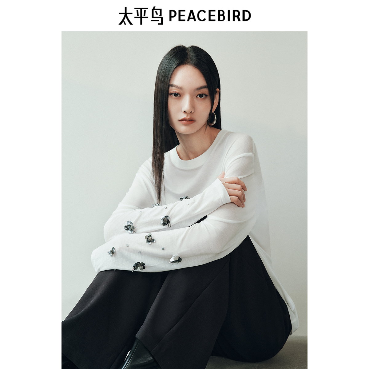 断码 花朵钉珠打底衫 秒杀 T恤个性 上衣 太平鸟顺滑莱赛尔长袖