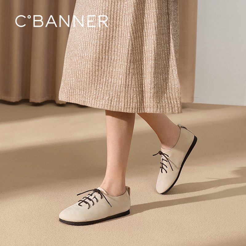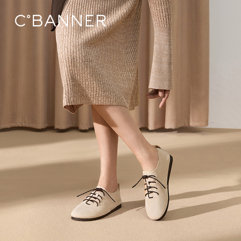 女款 平底鞋 2025秋季 温柔风晚晚单鞋 舒适 新款 千百度复古真皮牛津鞋
