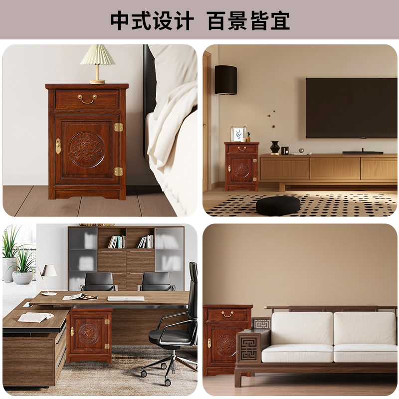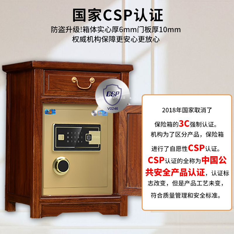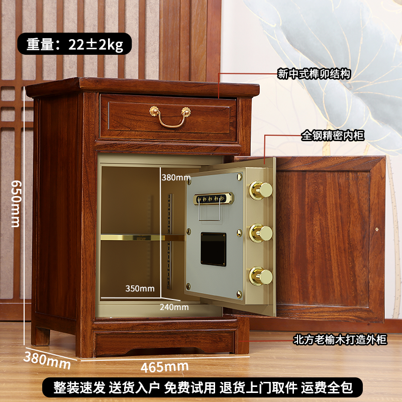 隐藏式 家用小型指纹全刚防盗手机远程存钱看不出来 鹿匠实木保险柜新中式 一体床头保险箱 CSP认证