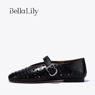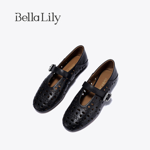 女复古透气镂空浅口平底鞋 洞洞玛丽珍单鞋 新款 BellaLily2025夏季