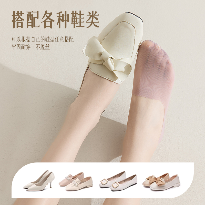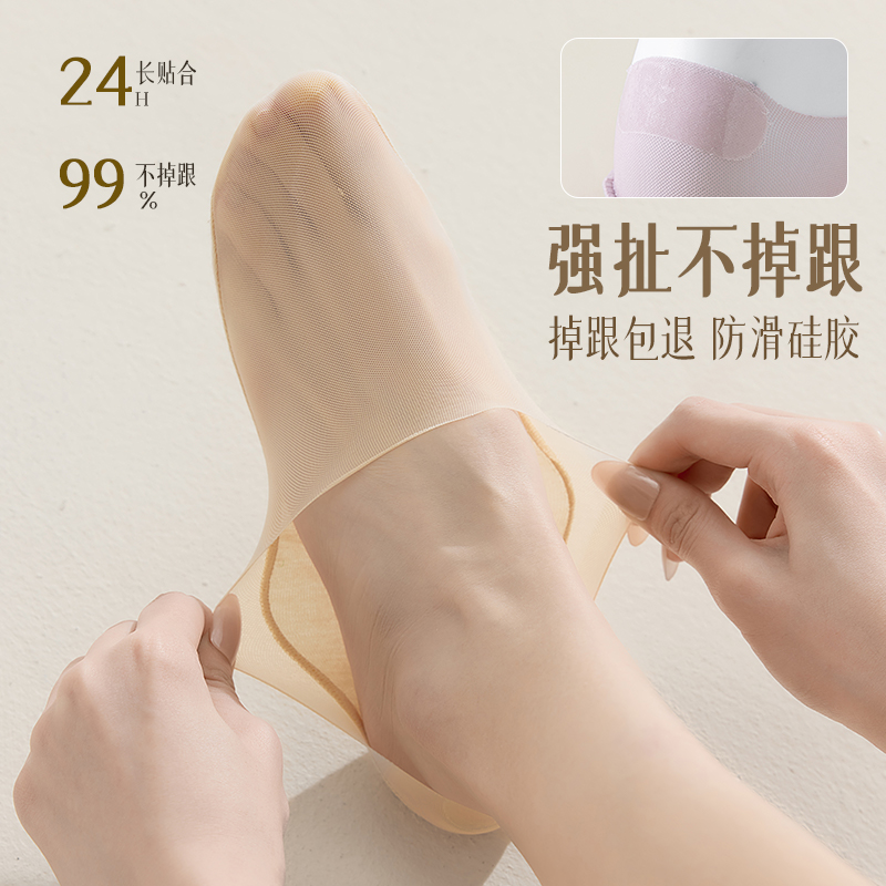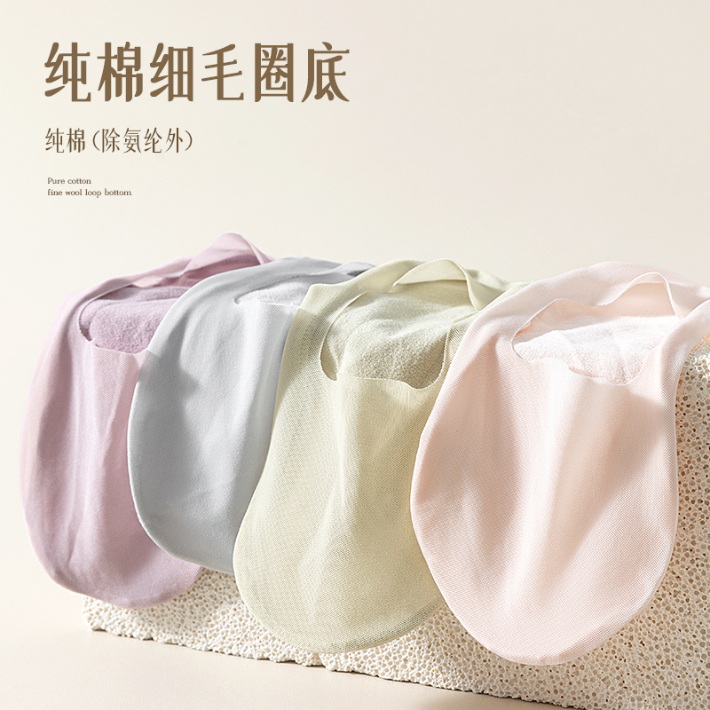 吸汗透气纯棉底硅胶防滑不掉跟单鞋 冰丝隐形袜子女船袜春夏季 薄款