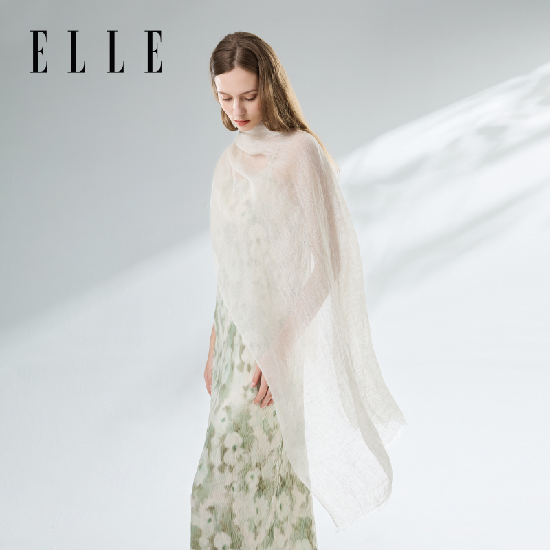 披肩薄款 ELLE100%亚麻丝巾女士春夏季 围巾法式 外搭优雅妈妈款 时尚