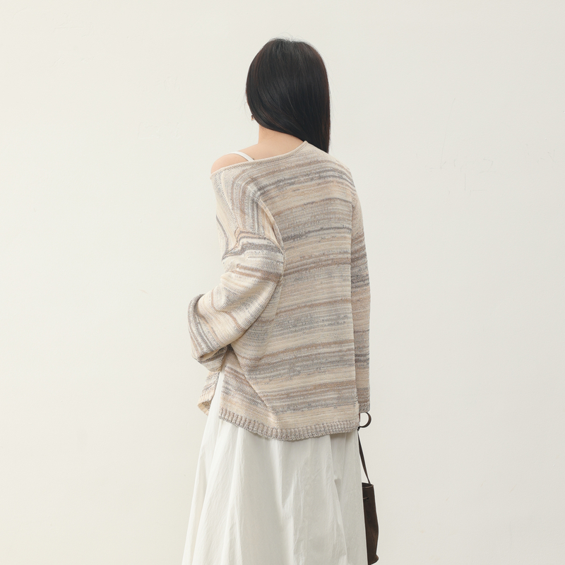 渐变针织条纹撞色套头毛衫 25春时尚 商场同款 AX51MS239 AIRIQI