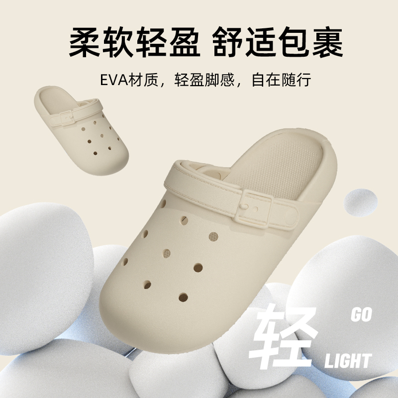 户外防滑沙滩鞋 朴西奶酪情侣厚底踩屎感洞洞鞋 包头拖鞋 夏季 男 女款