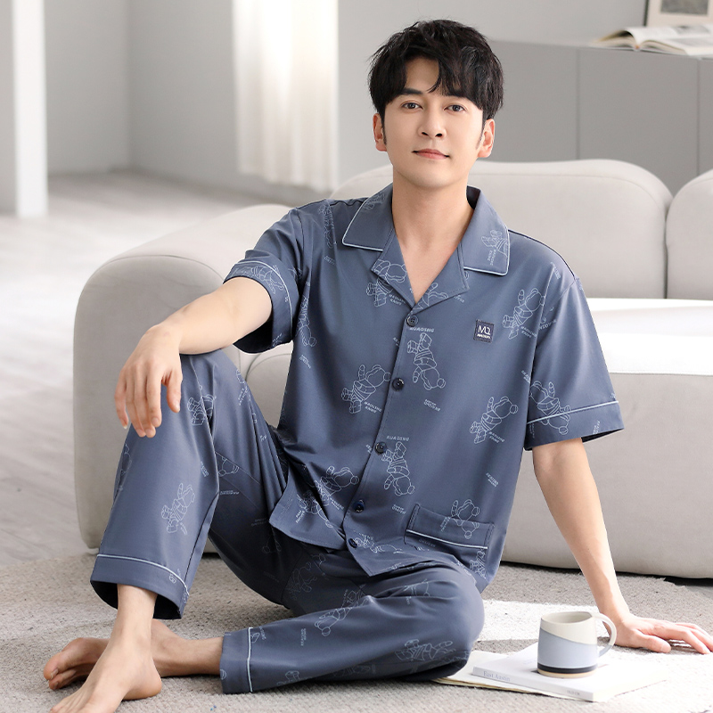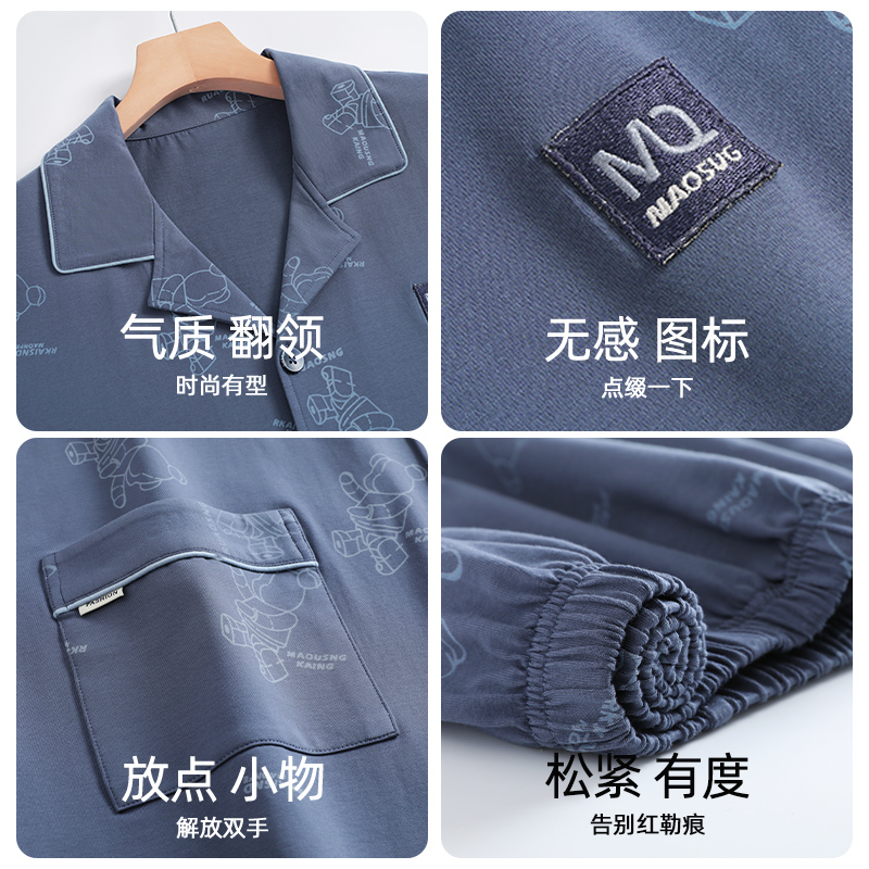 开衫 春秋季 长袖 套装 全棉高级感可外穿家居服 长裤 猫人纯棉睡衣男款