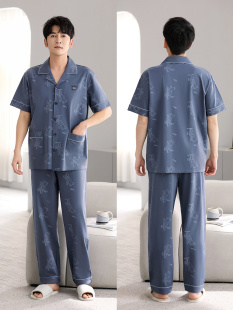 长袖 可外穿家居服套装 开衫 新款 男 纯色全棉秋冬季 雅鹿纯棉睡衣男士