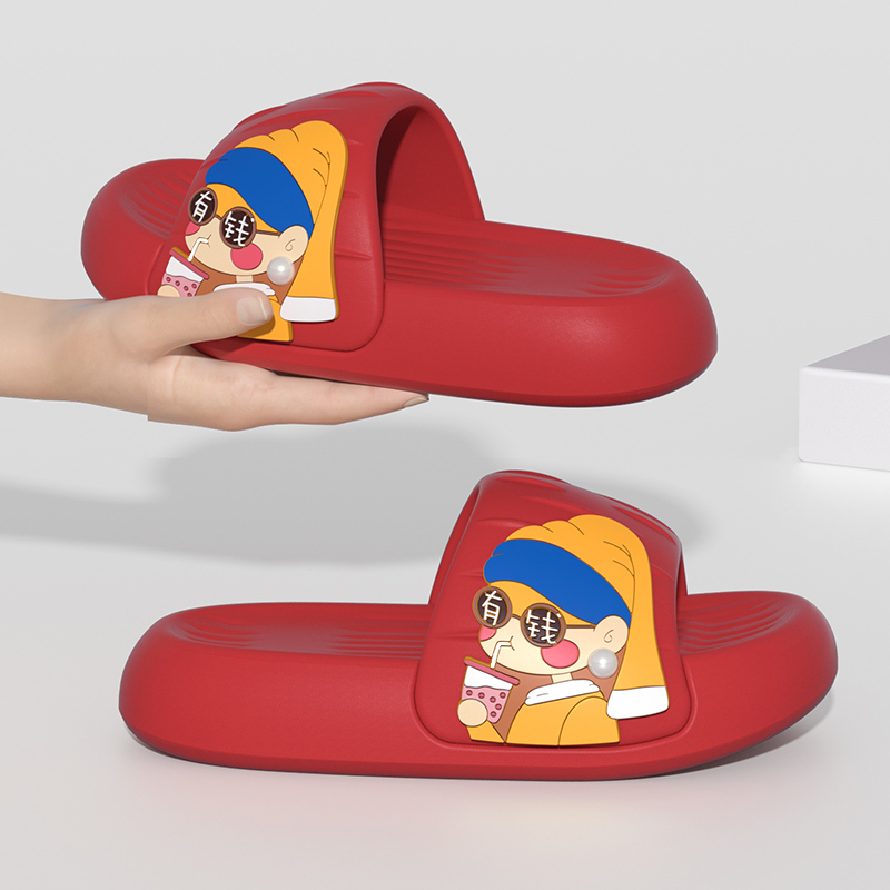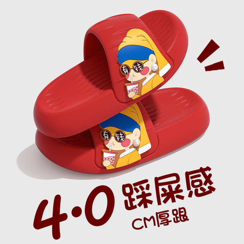 本命年红色室内居家海边沙滩防滑厚底拖鞋 新款 女夏季 踩屎感凉拖鞋