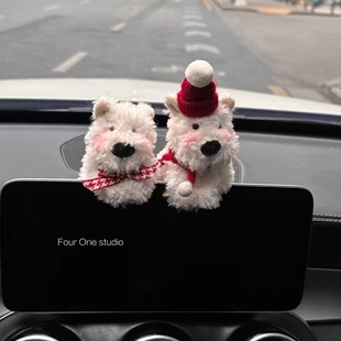 汽车中控屏幕摆件西高地车可爱狗狗内饰女生车用品特斯拉毛绒玩偶