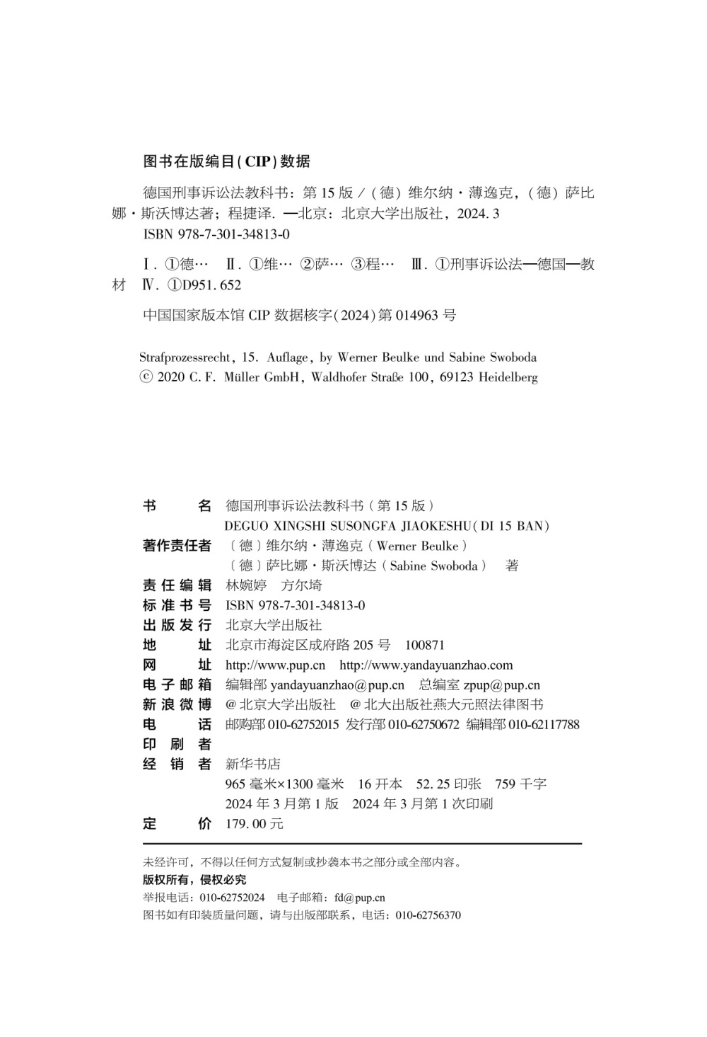 薄逸克 萨比娜 社 第15版 9787301348130 北京大学出版 维尔纳 程捷 德国刑事诉讼法教科书 斯沃博达
