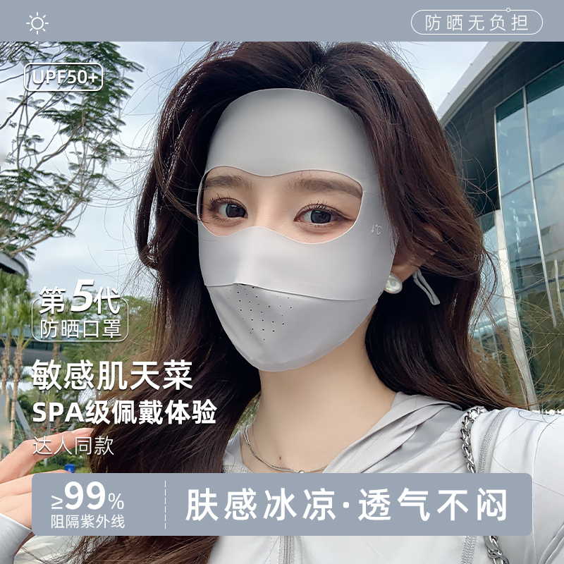 防晒面罩脸基尼女防紫外线夏季 冰丝透气遮阳全脸开车骑行口罩防护
