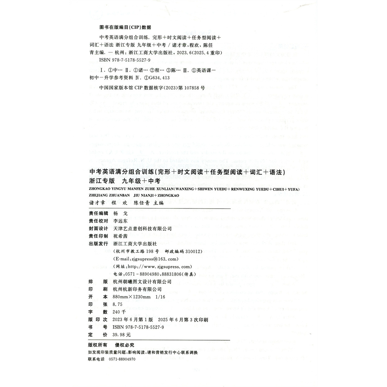 初中生课本同步专项训练课内外书籍训练 完形填空时文阅读理解词汇语法 2026新版 泰蒙图书中考英语满分组合训练九年级中考浙江专版