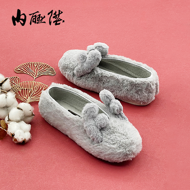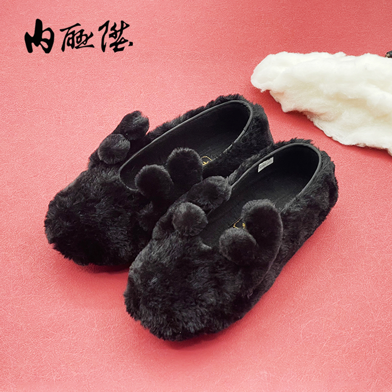 DN8695 手工千层底龙行龘龘毛绒龙角布鞋 大内联升女鞋 加绒毛毛鞋