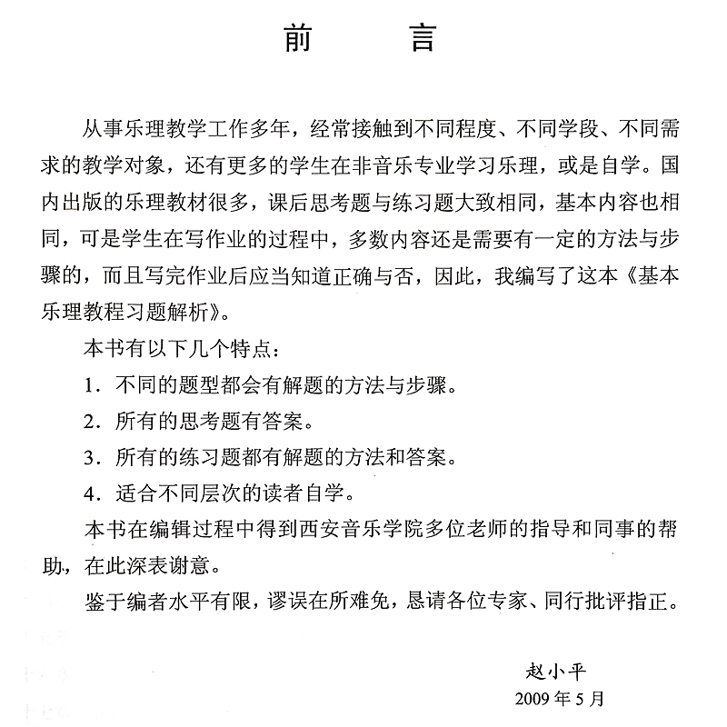 社 正版 人民音乐出版 赵小平著基本乐理练习教材书附答案 音乐图书籍 基本乐理教程习题解析