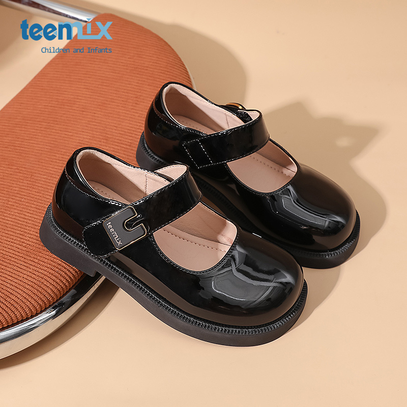小孩公主鞋 teenmix女童小皮鞋 儿童软底单鞋 新款 大童 黑色2025春季