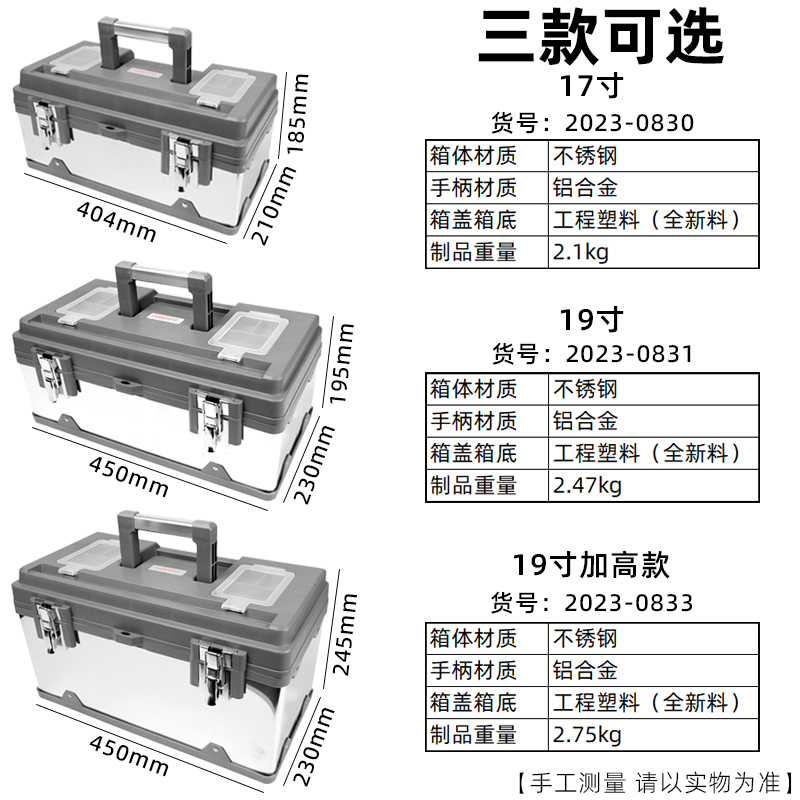 NAKIOO不锈钢工具箱工业级车载家用多功能五金工具收纳箱收纳盒