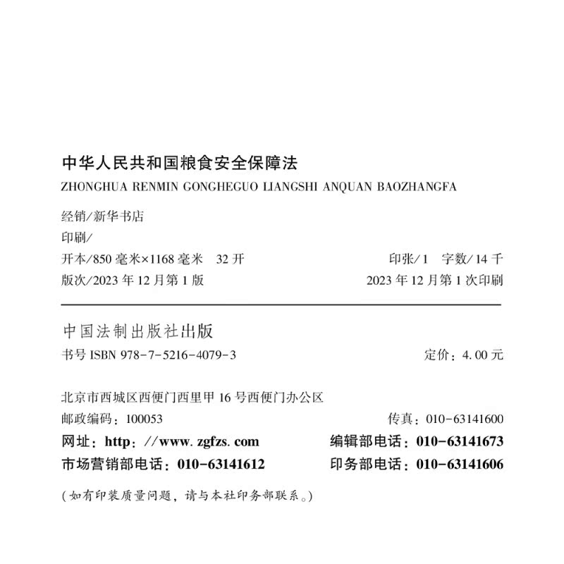 法制出版 2023年12月版 国家粮食安全战略保障制度 含草案说明 社9787521640793 中华人民共和国粮食安全保障法