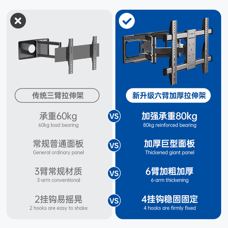 超薄电视机伸缩挂架折叠旋转支架85寸适用于创维索尼海信等通用