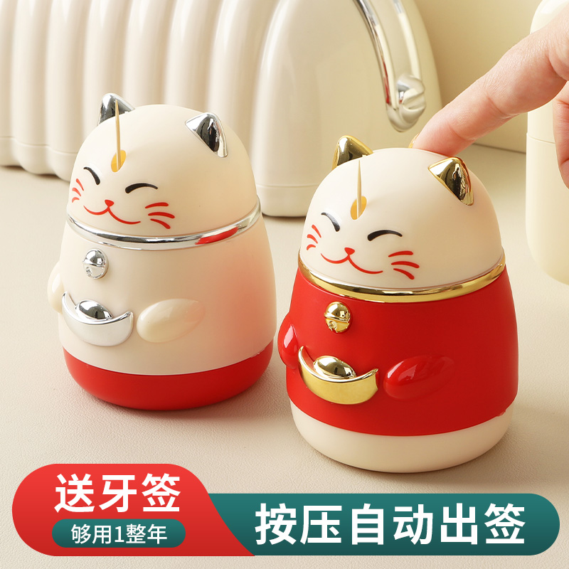 创意牙签筒自动弹出家用收纳高颜值个性 国潮餐厅牙签盒 招财猫新款
