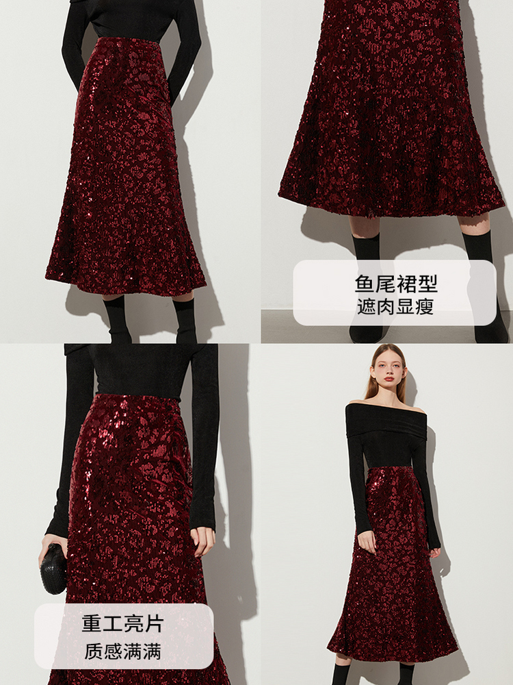 女装 2025新款 黑色百搭亮片a字裙子百搭闪钻裙 款 亮片裙半身裙秋装