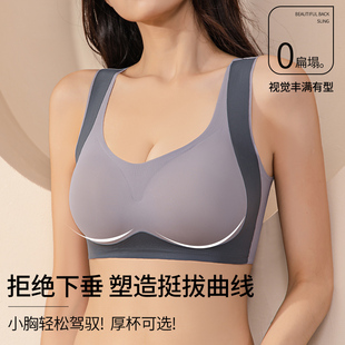 内衣女小胸聚拢厚杯无痕提拉收副乳防下垂平胸背心式 运动美背文胸