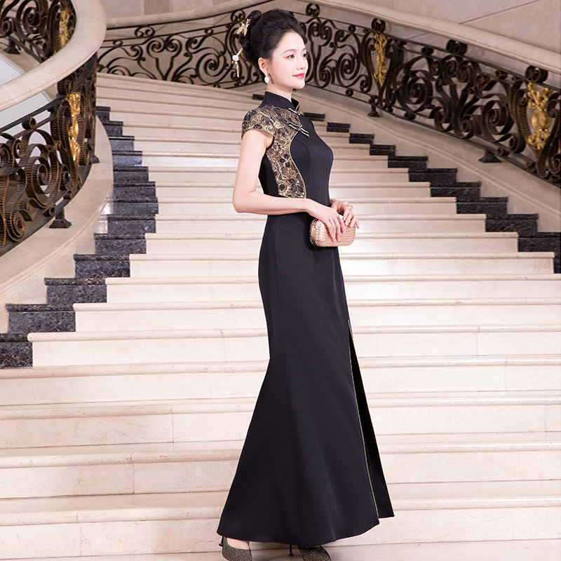多丽琦改良旗袍裙高端优雅宴会主持礼服减龄显气质连衣裙日常可穿