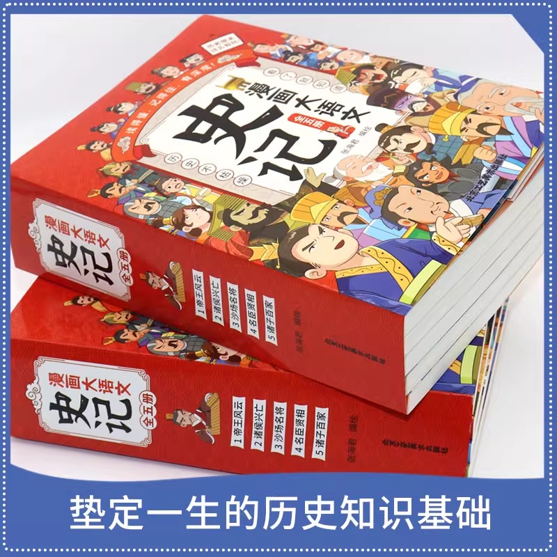 历史故事 课外阅读书籍正版 漫画大语文史记全套5册适合三年级四五六年级小学生青少年版 儿童文学读物历代帝王传记适合小学生看