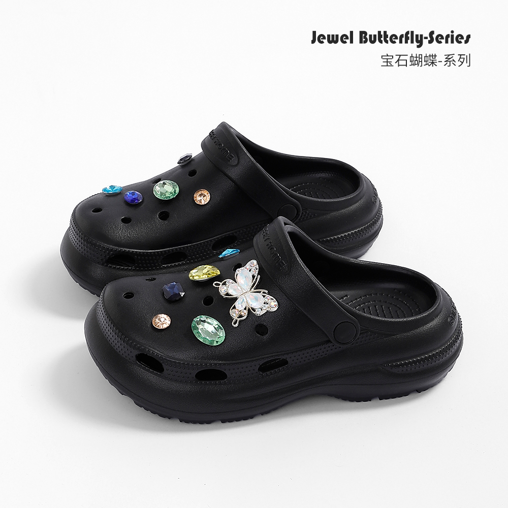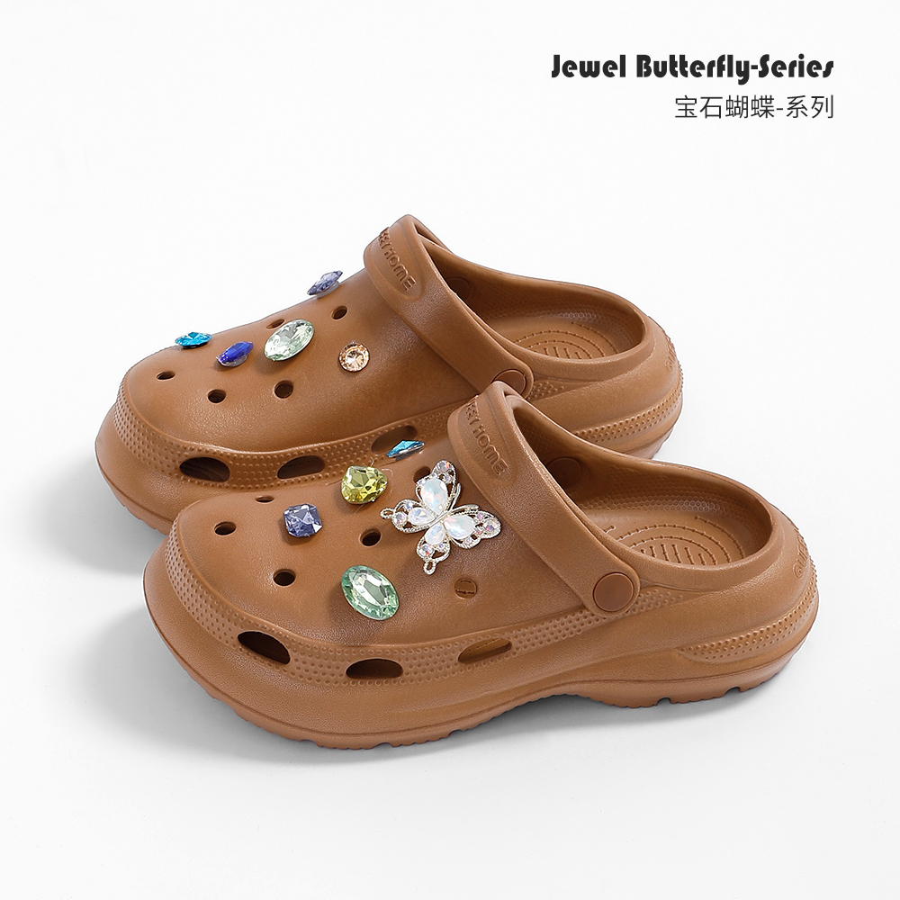 外穿简约防滑厚底包头宝石蝴蝶凉鞋 2025新款 女 女夏季 踩屎感洞洞鞋