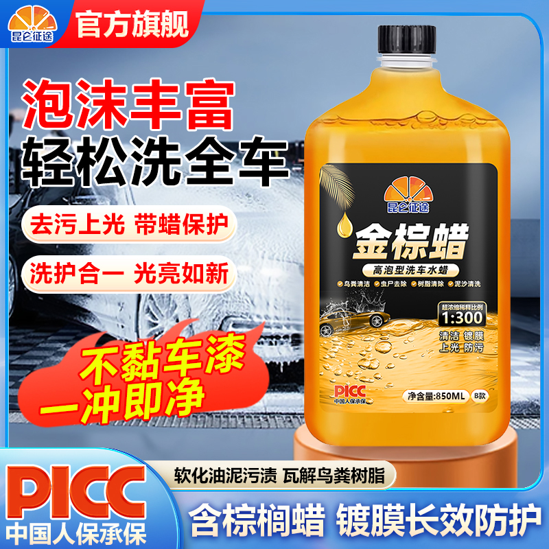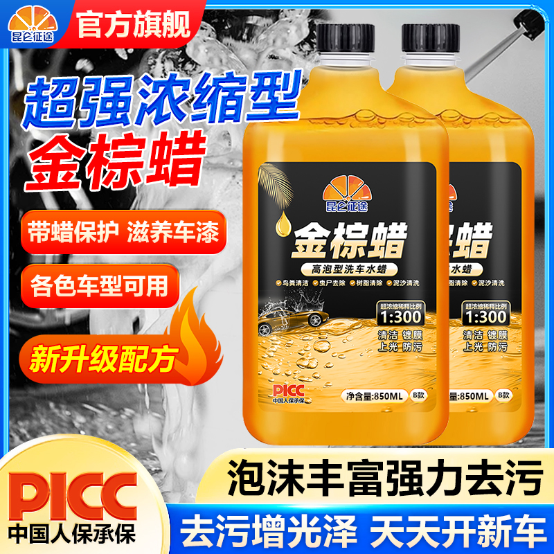 昆仑征途金棕蜡高泡洗车水蜡浓缩泡沫镀膜强力去污上光汽车清洗剂