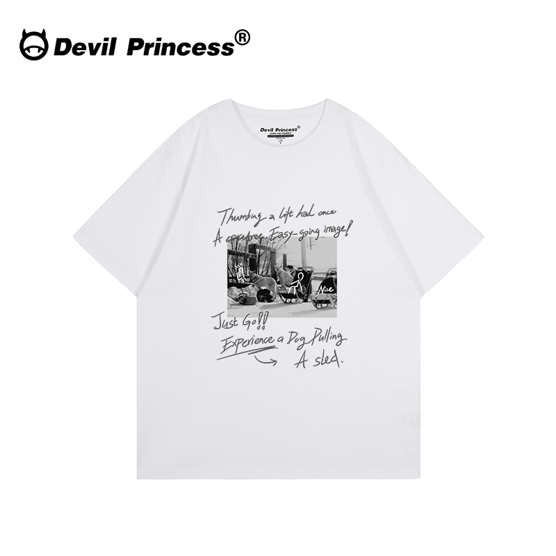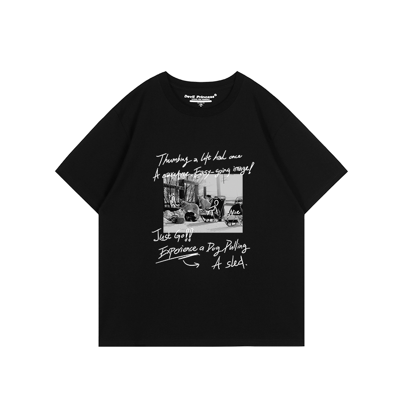 宽松重磅半袖 t恤女大版 上衣 街头风复古字母涂鸦印花情侣短袖 美式