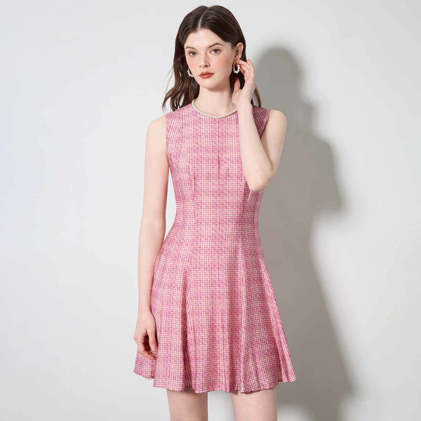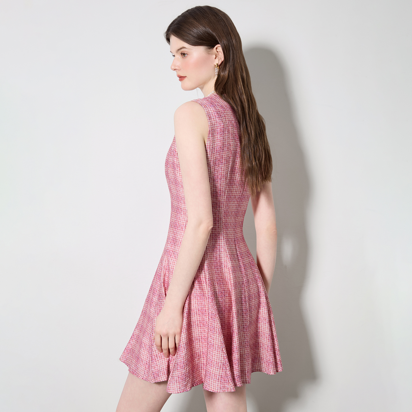女式 无袖 连衣裙 复古植绒印花弹力修身 Desigual25秋冬新品