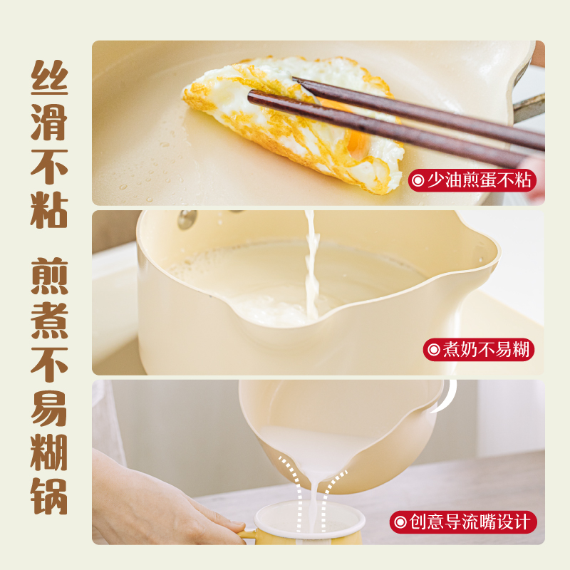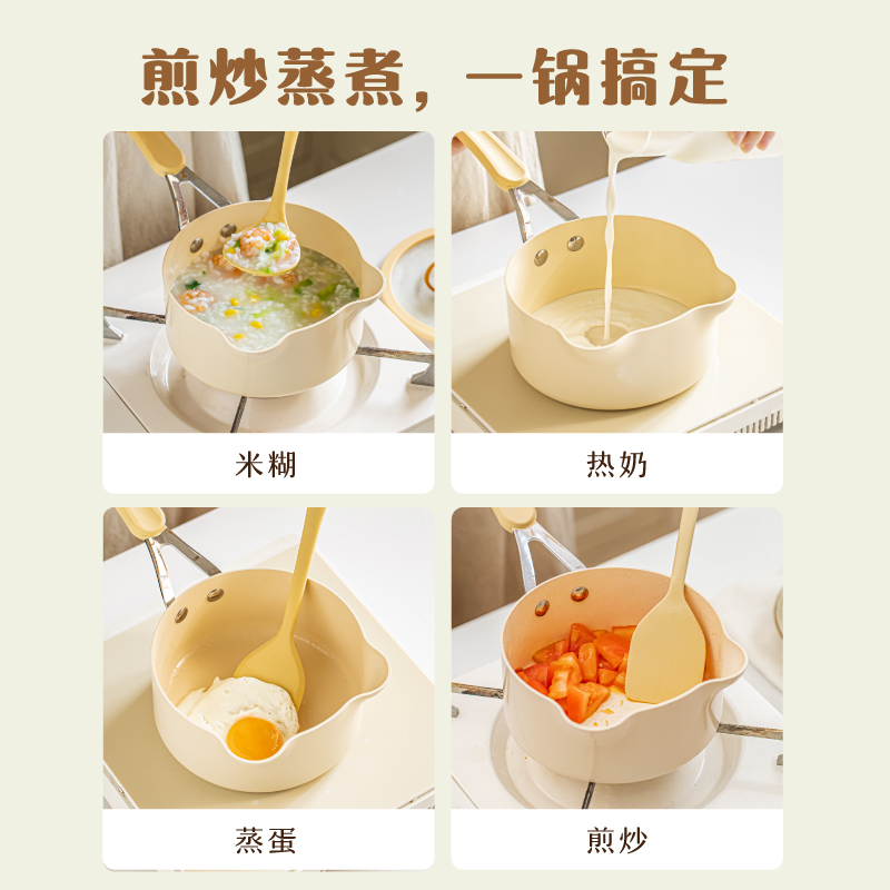 树可小熊陶瓷小奶锅辅食宝宝婴儿不粘锅煮面汤锅一人 双11预售