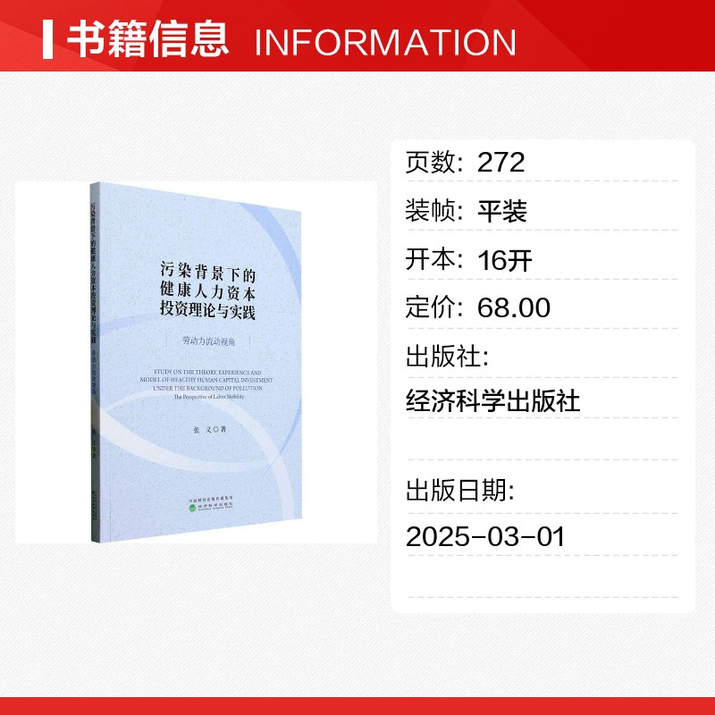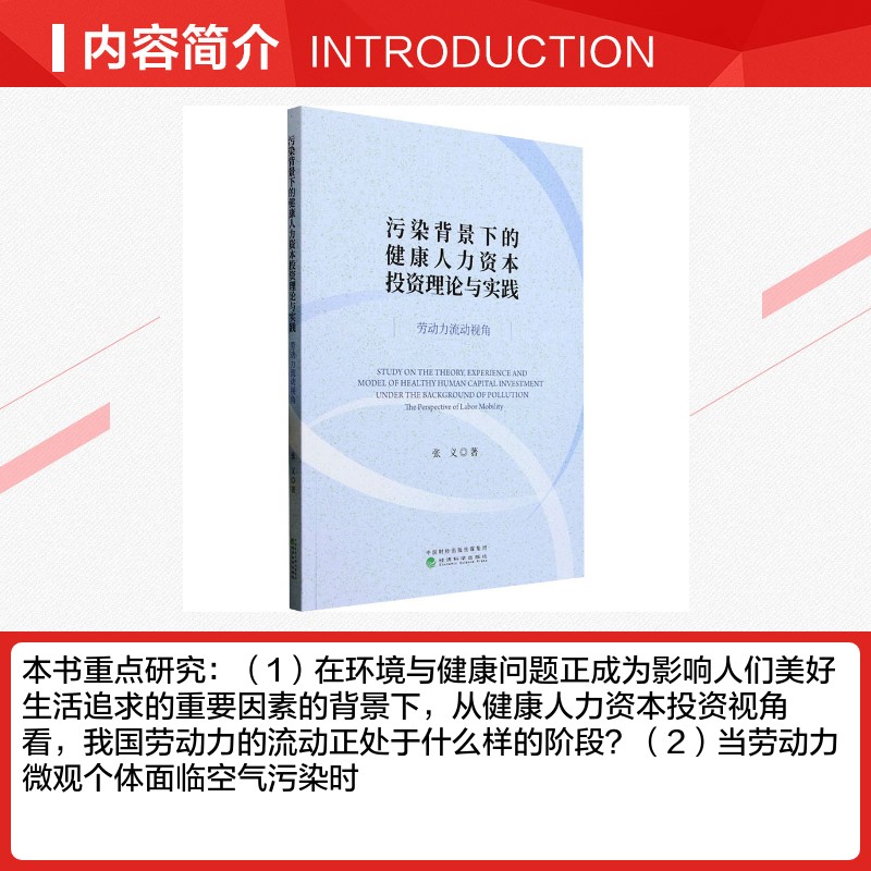 励志 社 劳动力流动视角 经济科学出版 图书籍 新华书店正版 人力资源经管 著 张义 健康人力资本投资理论与实践 污染背景下