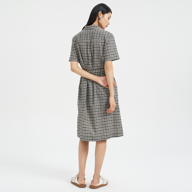 法式 新款 气质感荷叶边V领格子背心长裙 爱依服连衣裙2025夏季 IEF